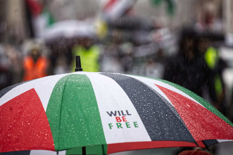 Photographs of a protest outside Nottingham City Library, 18th February 2025, where approximately 20 people held up signs saying “I Oppose Genocide, I Support Palestine Action”. All were subsequently arrested by the police.